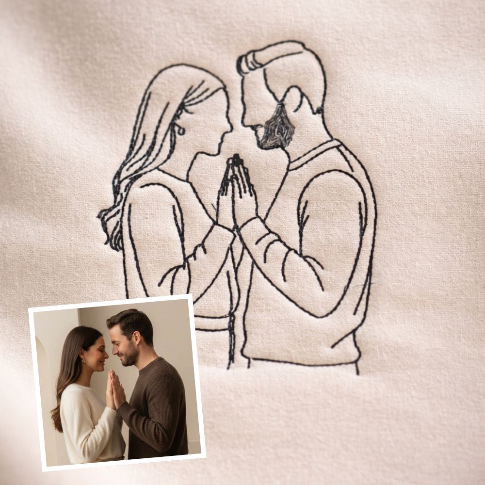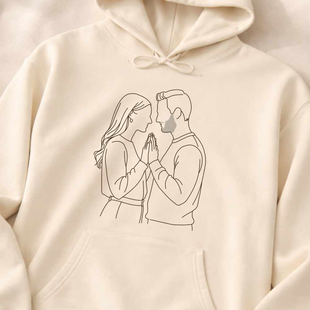 Unlike printed photo hoodies, our line art embroidery creates a refined, timeless aesthetic. The result is subtle, elegant, and deeply personal, a modern heirloom designed to be worn for years.