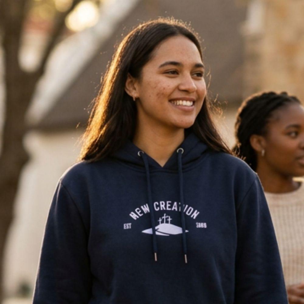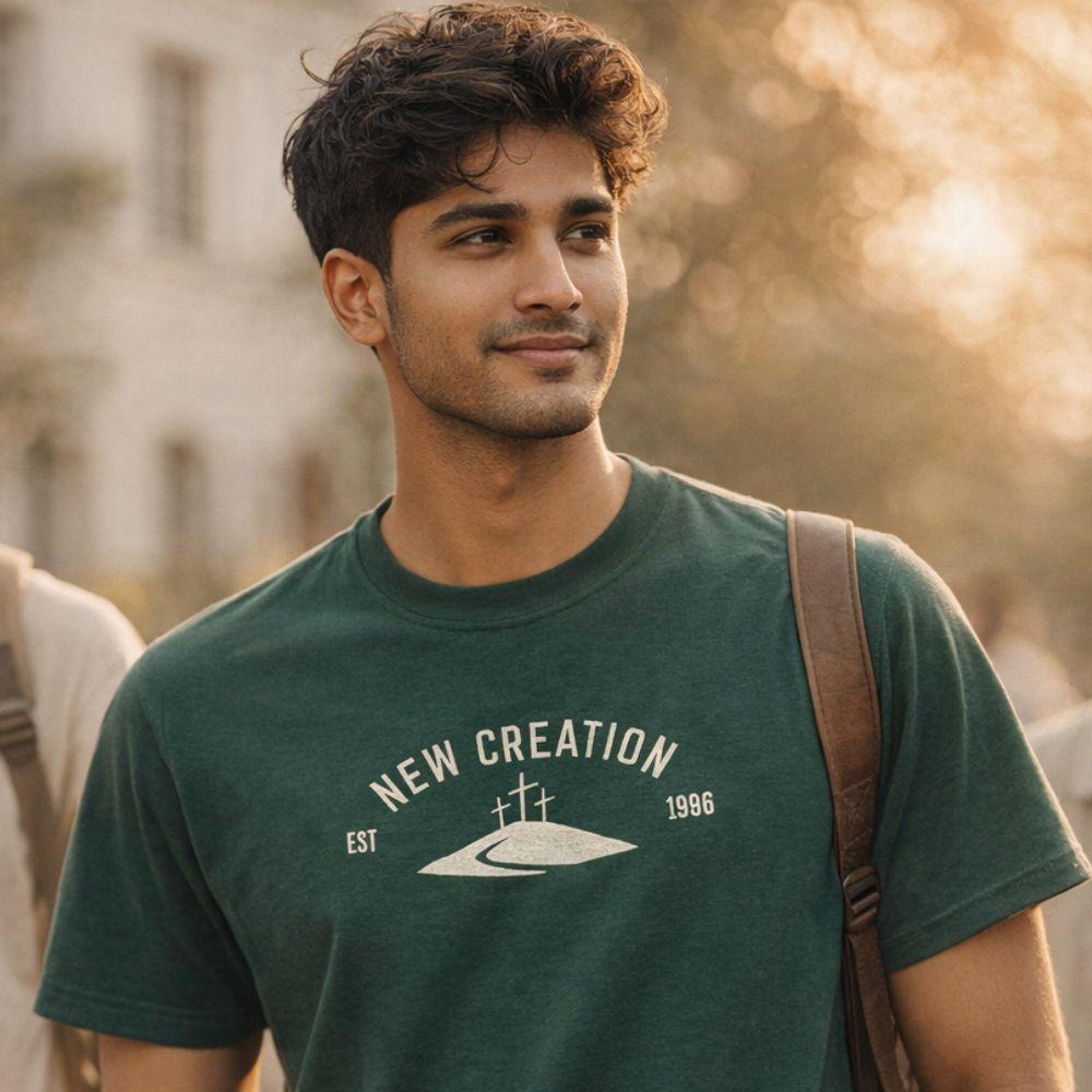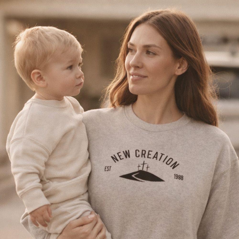 A refined expression of faith. The New Creation design is custom embroidered, on the garment of your choice, with your personal year of transformation, crafted with intention, designed to last.